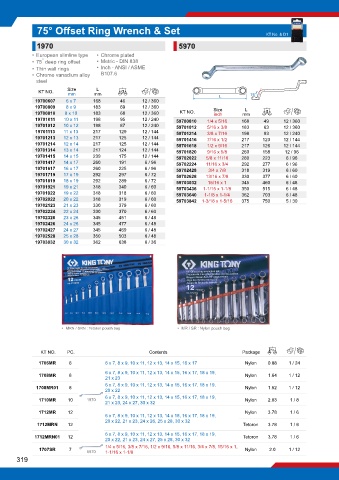 19701819 18 x 19 292 289 6 / 72 59703032 15/16 x 1 345 460 6 / 48