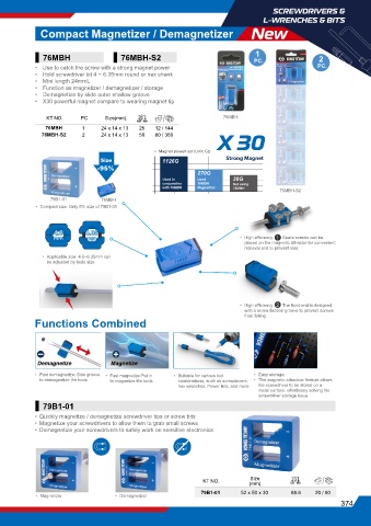 to demagnetize the tools to magnetize the tools combinations, such as screwdrivers, • The magnetic attraction feature allows