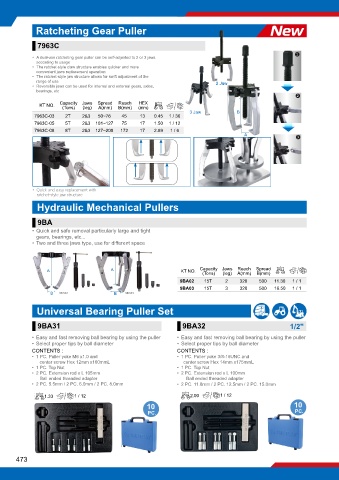 • A dual-use ratcheting gear puller can be self-adjusted to 2 or 3 jaws