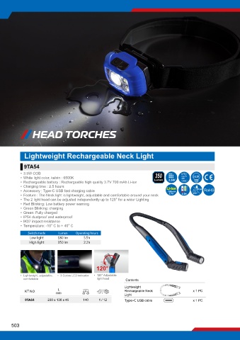 • Lightweight, adjustable, • 3 Colors LED indicator • 120° Adjustable