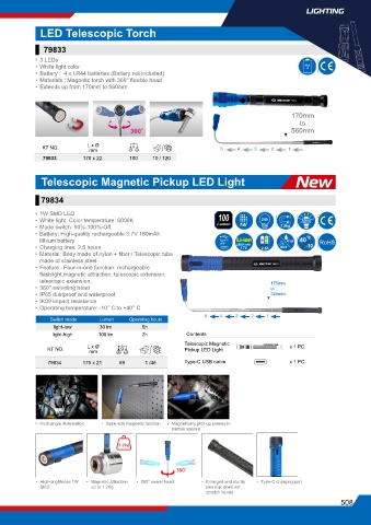 • Multi-angle illumination • Base with magnetic function • Magnetically pick up screws in