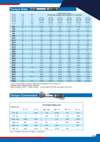 * Torque tightening is refer to “thread dimension” of screw, which is M3~M64 size mention above table