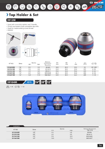 • Chuck mechanism hold compatible tap drills