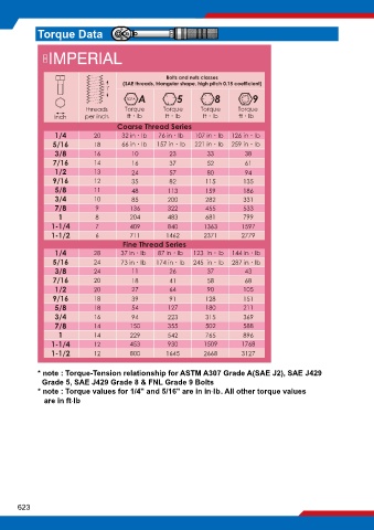 * note : Torque-Tension relationship for ASTM A307 Grade A(SAE J2), SAE J429