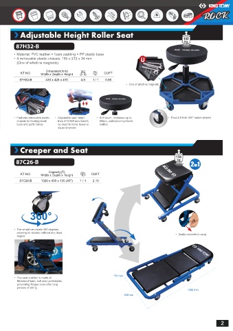 • Features removable plastic • Adjustable seat height • Soft touch, thickness up to • Four 2.5-inch 360° swivel wheels