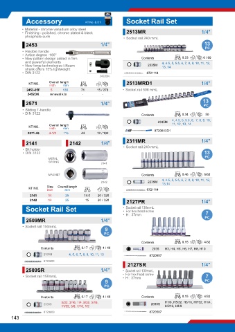 2453-05F 5 130 71 15 / 270 • Socket rail 508 mmL