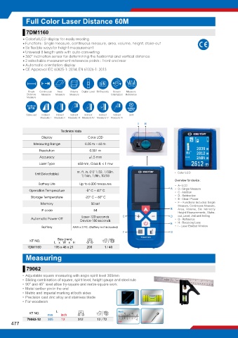 • Functions : Single measure, continuous measure, area, volume, height, stake-out