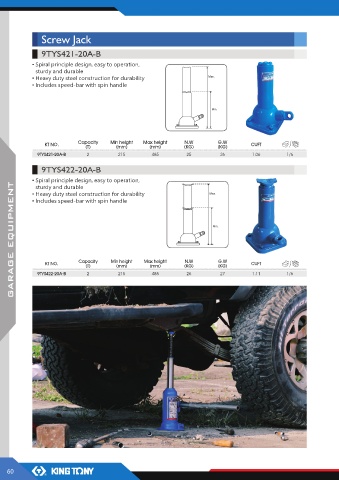 KT NO. Capacity Min height Max height (KG) G.W CUFT