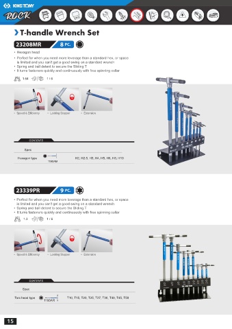 Torx head type T10, T15, T20, T25, T27, T30, T40, T45, T50