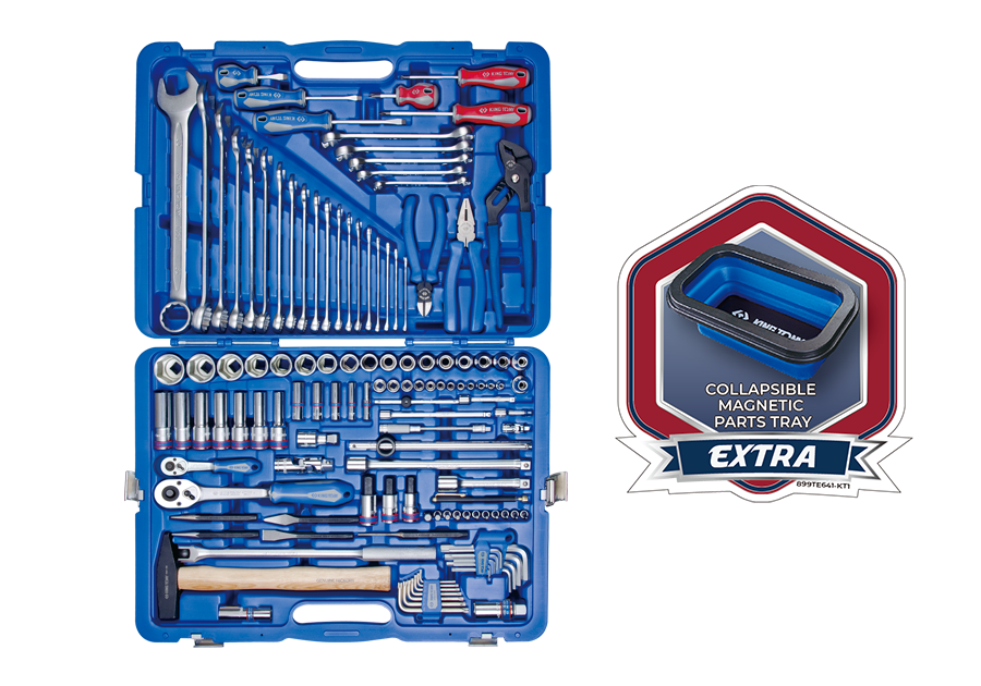 • Juego de Dados y Herramientas de 1/4"+1/2" DR. de 128 Piezas