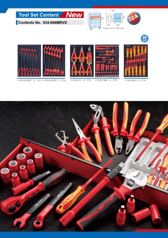 560 Tool Set Content Tray #9 375 Contents No. 934-086MRVD Tray #10 Tray #10 140 280 Drawer (579 x 380 mm) 86 PC. 9-12FVE15MRV #9 P.78 9-12FVG15MRV #9 P.78 9-40606GPV #9 P.79 9-55VE01MRV #9 P.78 9-30612MRV #9 P.79 59