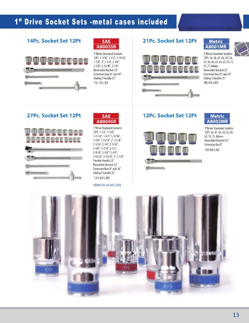 14Pc. Socket Set 12Pt SAE 21Pc. Socket Set 12Pt Metric